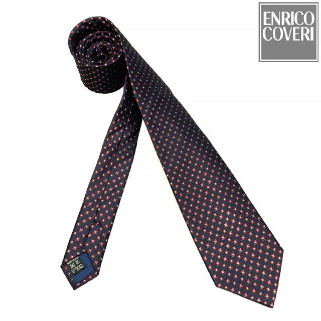 ◇ENRICO COVERI◇イタリア製ネクタイ◇濃紺×赤◇小紋◇シルク100%◇メール便可 ネクタイ ブランド エンリココベリ ENC104