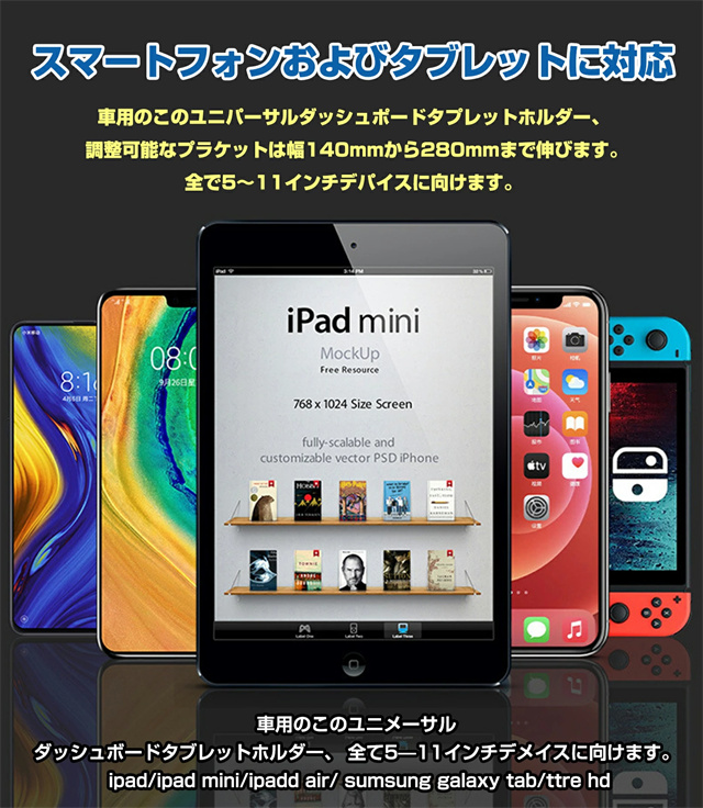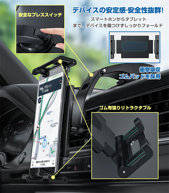 送料無料 冬新作 車載ホルダー タブレットホルダー スマホホルダー 車 車載 ipad 車載タブレットホルダー ダッシュボード用 超強力粘着ゲル+真空吸盤 360度回転 自由調節 伸縮アーム 取り付け簡単 5.5〜11インチ全機種対応