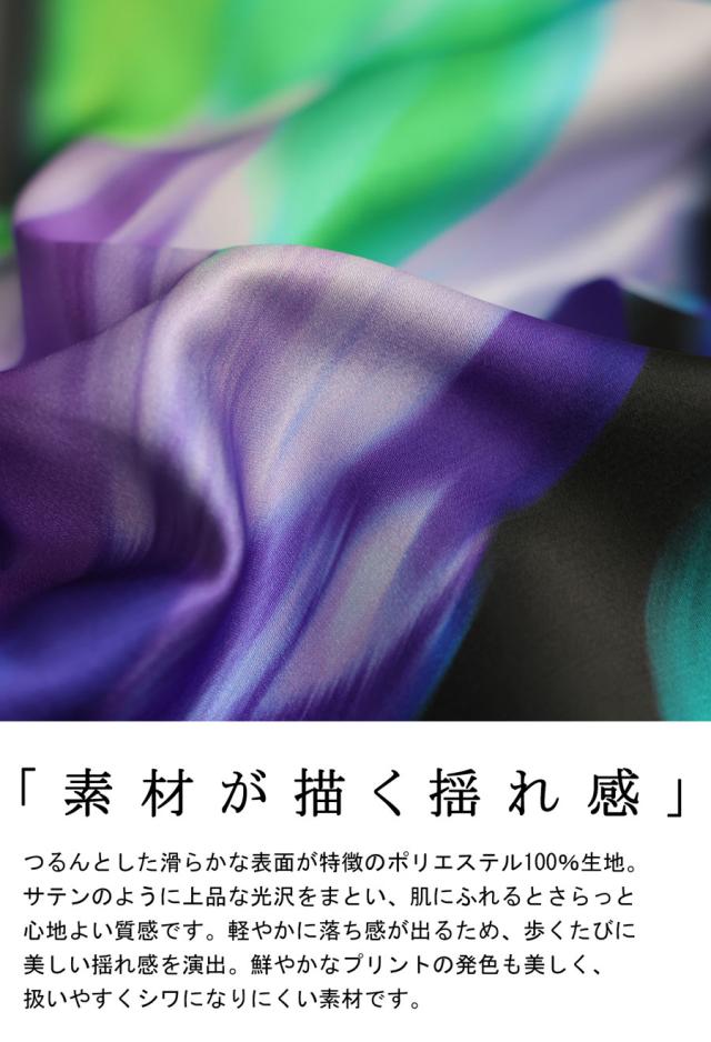 軽やかで滑らかなポリエステル素材は、肌あたりも優しく、落ち感があるためラインがきれいに出るのもポイントです。
