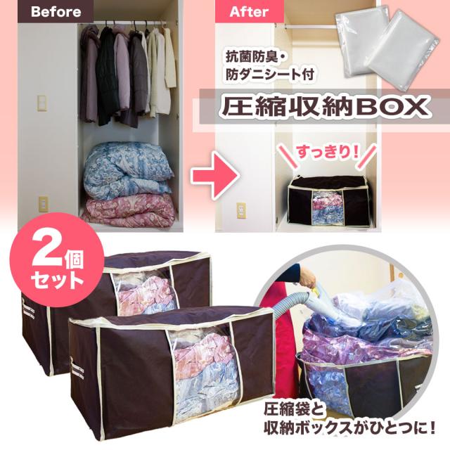 圧縮収納BOX 2個組 抗菌防臭・防ダニシート付 ブラウン オリエント 圧縮収納ボックス ゆとり ふとん 衣類 収納 収納ケース 収納ボックス 布団 衣類 服 圧縮 ケース 収納BOX 布団収納袋 布団収納 洋服収納 衣類収納ケース 押し入れ クローゼット 持ち運び ふた付き