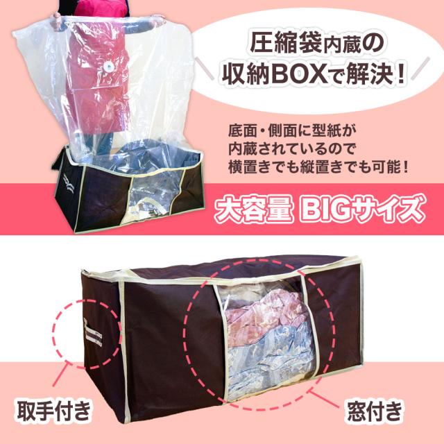 圧縮 収納 圧縮袋 衣類 ひとつ 一体型ボックス 衣類圧縮袋 衣類圧縮袋収納ボックス 圧縮ボックス 圧縮袋一体型BOX 衣類収納袋 スペース 収納ボックス 衣類収納 ぬいぐるみ ゆとり 圧縮収納ケース 圧縮袋付き収納ケース 大物 布 洋服 ラク 取っ手付き 押し入れ収納 押入れ収納 洋服収納 窓付き収納ボックス 衣類収納ボックス 衣類用 クローゼット 不織布 収納BOX 洋服収納袋 衣装 衣類収納ケース 雑貨 インテリア アイデア商品 アイデアグッズ 衣替え 省スペース 圧縮袋 ふとん Q-PON 一人暮らし 布団 収納袋 簡単 圧縮