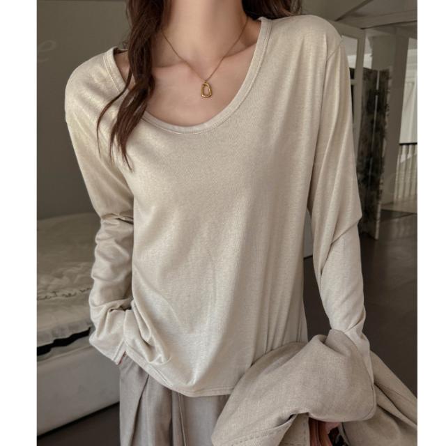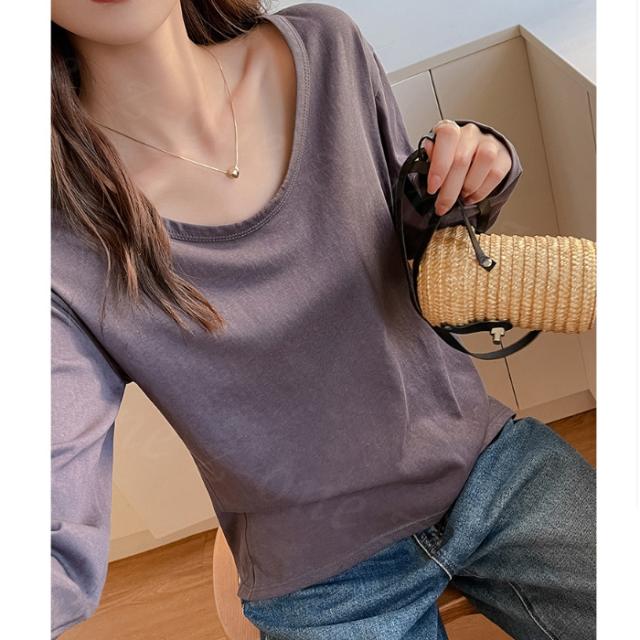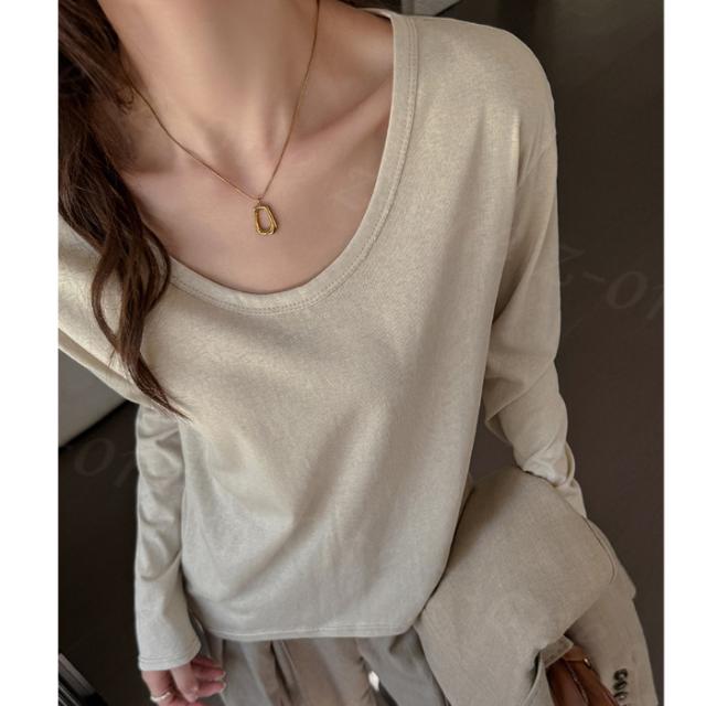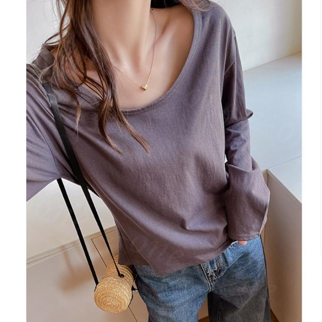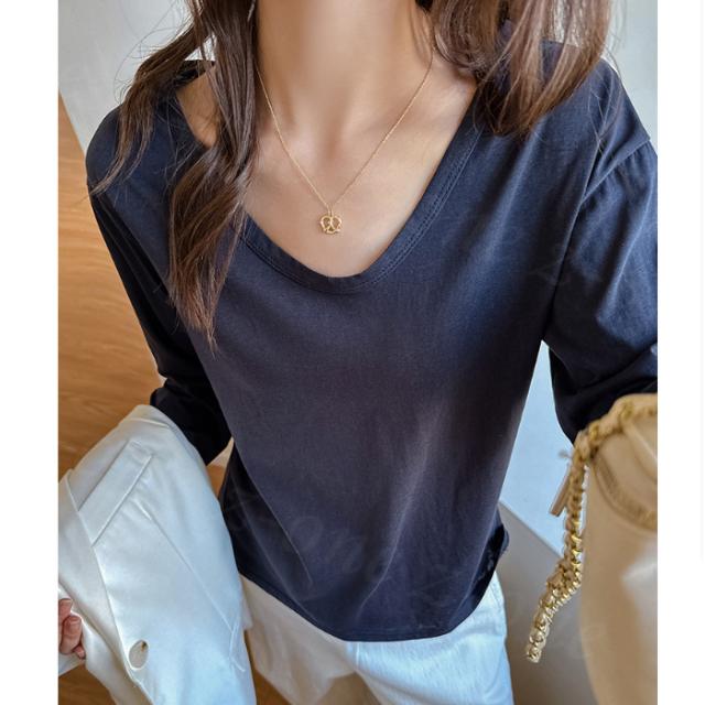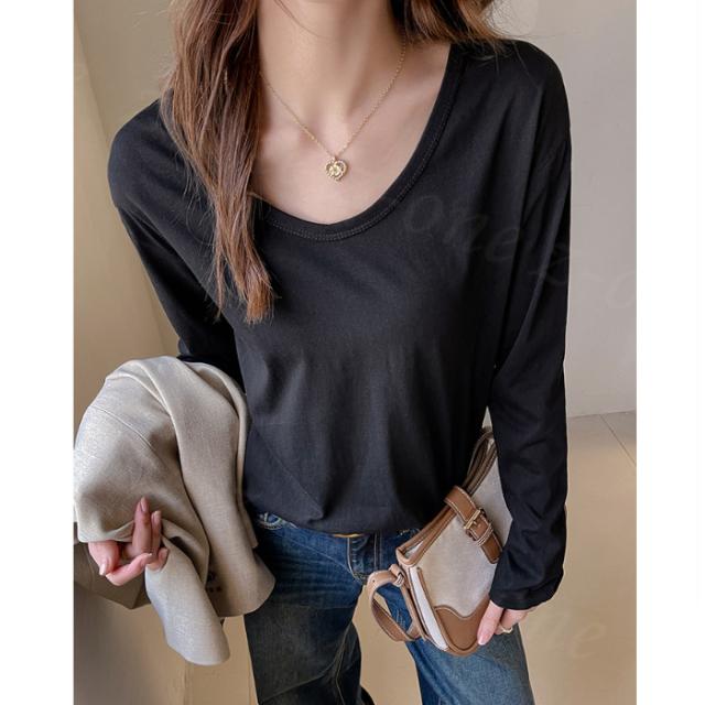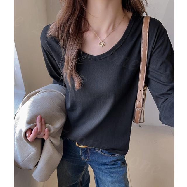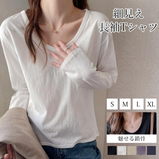 Tシャツ 長袖 カットソー Vネック ショルダーラインシーム スリム インナー 春新作 薄手 細見え レディース トップス ロング 体型カバー ホワイトデー 卒業式