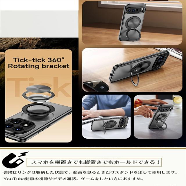 googlepixel10スマホケース 360°回転リングスタンド Google Pixel10 Pro XL Pixel9a ケース クリア スマホカバー グーグルピクセル10 クリア ケース 背面 カバー googlepixel10 ケース MagSafe対応 リング付き google pixel10 ケース スタンド シンプル 透明 黒
