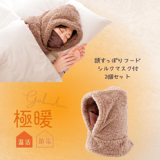 【2個セット】極暖 頭すっぽりフード マスク付き あったか グッズ あったかグッズ 首 耳 頭 顔 フード マスク シルク 絹 温め 首を温める 暖める 温める 電源なし 節電 冬 暖かい 秋冬 冬用 茶色 ブラウン 洗える ふわふわ ボア 防寒 暖かい 首周り 首まわり
