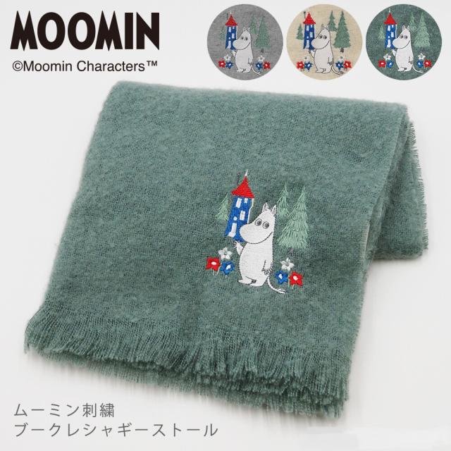 ふんわりストール 刺繍 ムーミンコラボ ブークレーシャギー素材 あったか ふわふわ マフラー moomin 防寒 首巻 首元 巻く北欧 Lune jumelle ルナ・ ジュメイル
