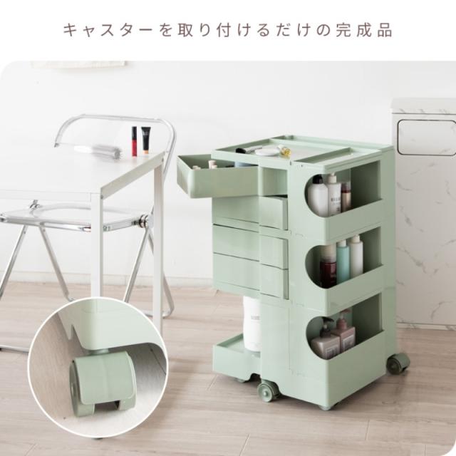 四面全てに収納スペースがある便利なトローリーワゴン『Pluna(プルーナ)』。丸みのある可愛いデザインが目を惹きます。