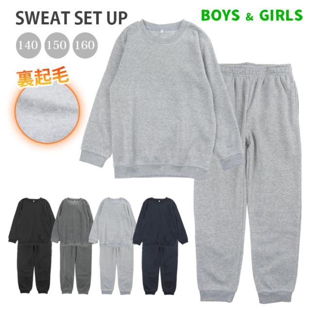 【送料無料】男女児 キッズ 裏起毛 スウェット スエット パジャマ ジュニア 子供用 ルームウエア 秋冬春 全4色 140 150 160 スウェットスーツ スエットスーツ 上下セット 長袖 部屋着 寝間着 長袖 長ズボン 無地 ブラック 杢チャコール 杢グレー ネイビー kj0015