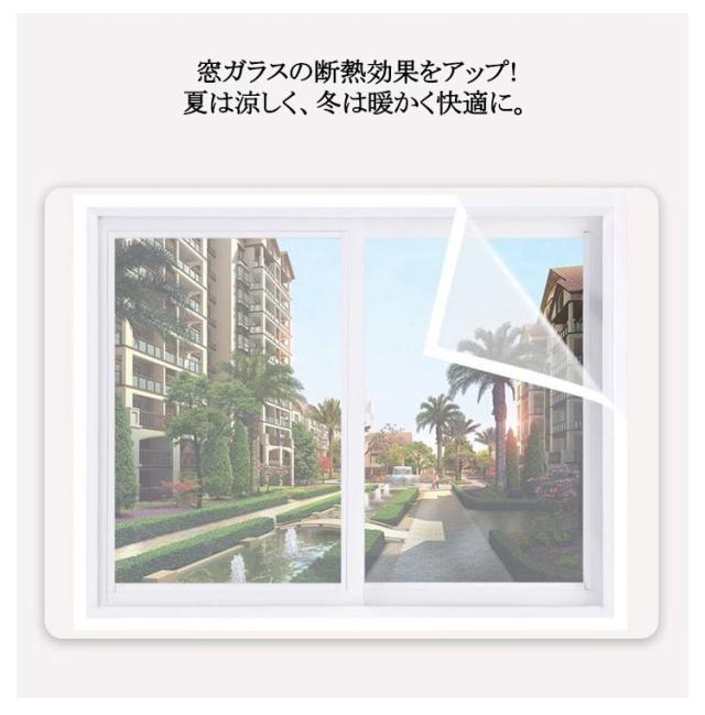| 窓枠に貼るだけ!冷気を防ぐ断熱カーテンです。 窓枠全体をカバーできて冷気の侵入、暖気の流入を防ぎます。 クリアタイプのシートだから取り付けても見た目が変わりません。 マジックテープ付きなので、簡単に貼り付けることができます。 窓ガラスの断熱効果をアップ!夏は涼しく、冬は暖かく快適に。 耐久性が優れており、長年にわたって使用できます。 使い方:1、窓枠内側の幅サイズを測ります。 2、枠内をキレイに拭きます。 3、マジックテープ「ループ面(ふわふわのテープ)」をシートに貼り付け ます。 4、マジックテープ「フック面(ザラザラしたテープ)」を「ループ面(ふわふわの テープ)」にセットします。 5、マジックテープを剥がします。 6、マジックテープを窓枠に強く押し付けて貼ります。 | |