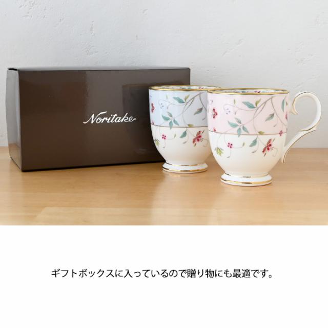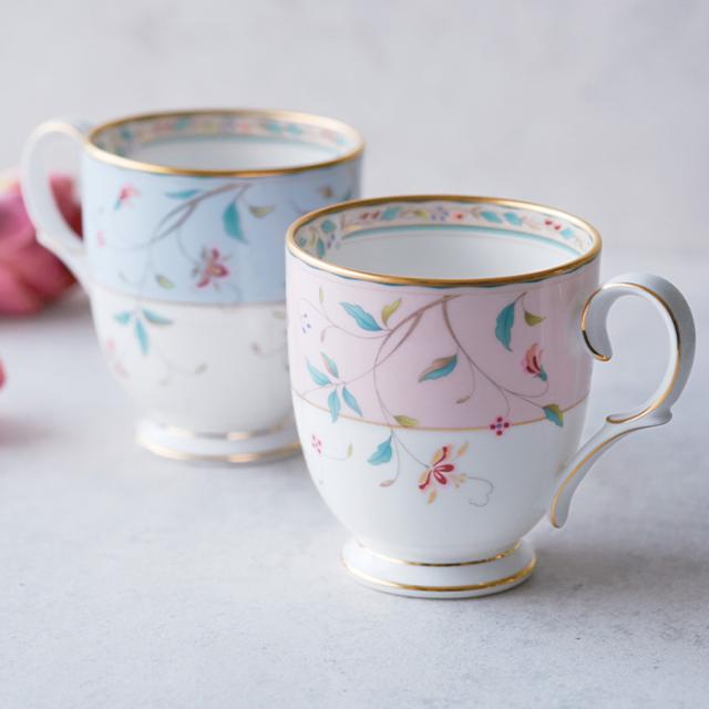 ノリタケ 花更紗 マグカップペア(色変り) 4409-56L/P50755A noritake 食器 普段使い ティーカップ コーヒーカップ カップ アフタヌーンティー ペアマグカップ 洋食器 おしゃれ ブランド 陶器 シンプル お餞別 結婚祝い 引き出物