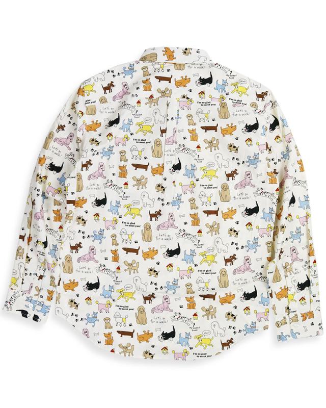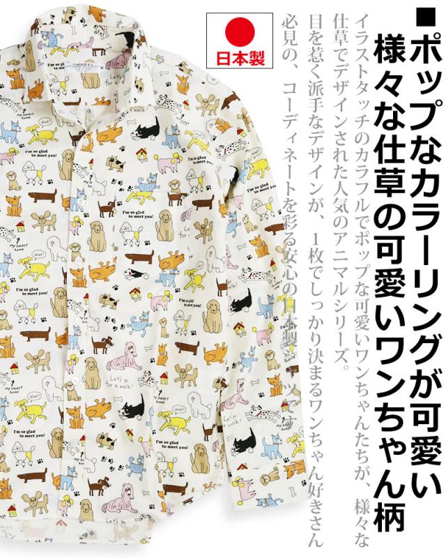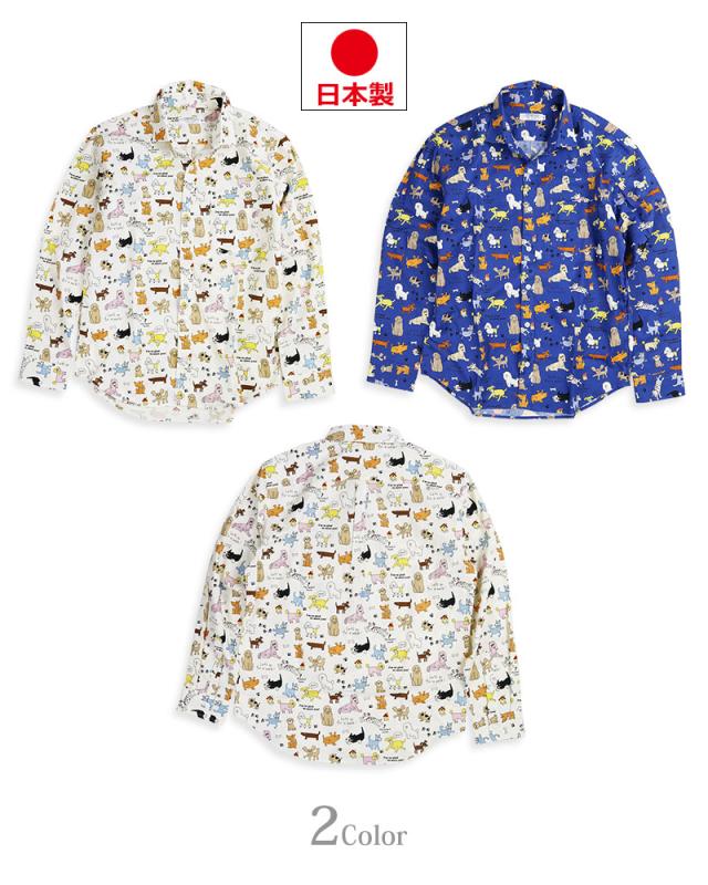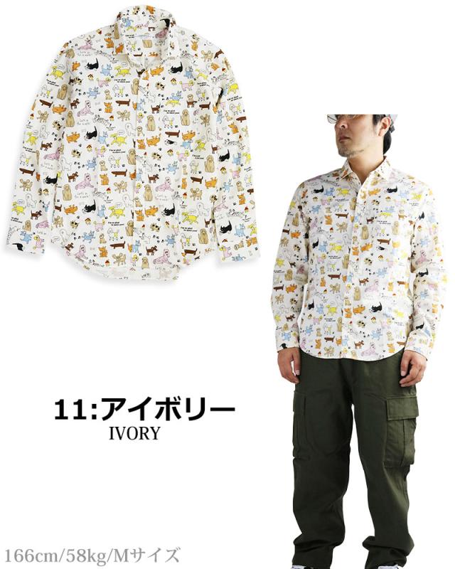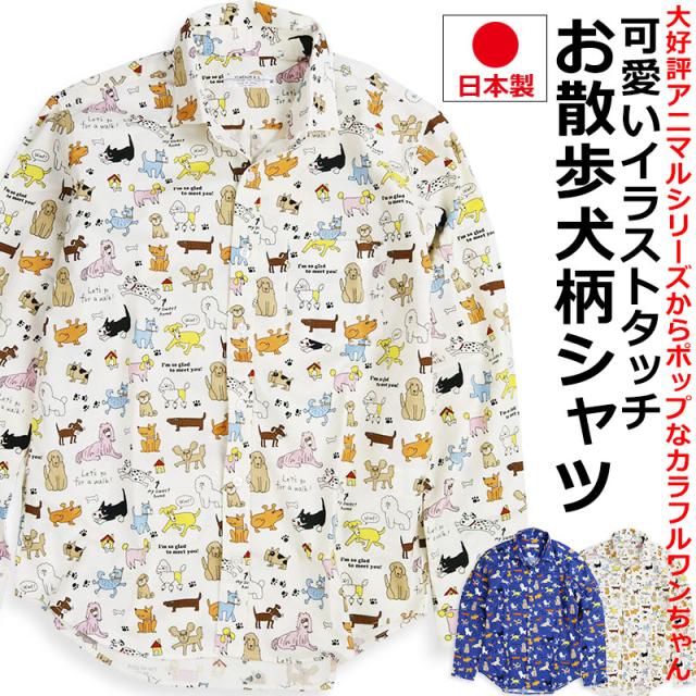 VINTAGE EL お散歩ワンちゃん 犬柄 長袖シャツ メンズ 柄シャツ アニマル柄 動物柄 犬 イヌ カラフル 派手柄 日本製
