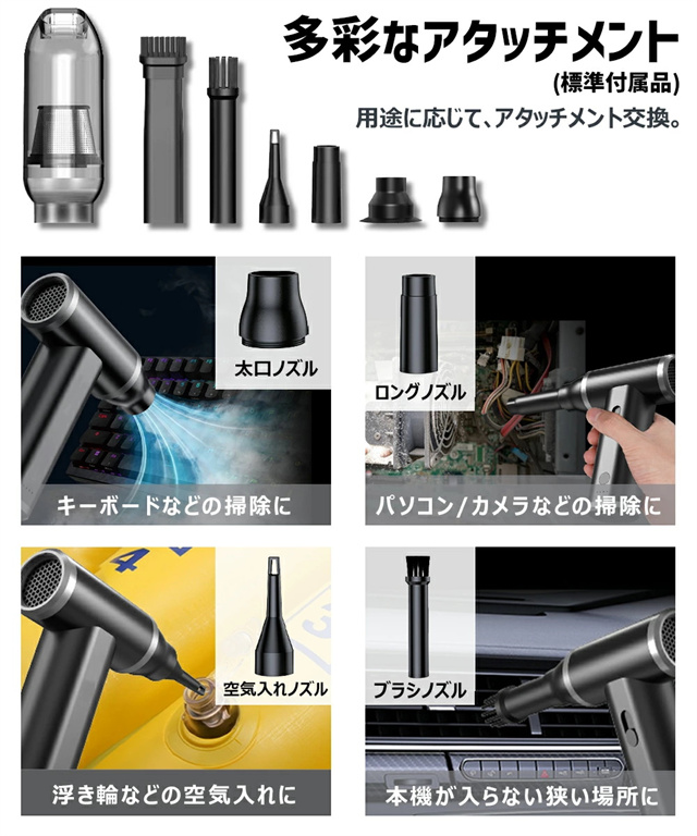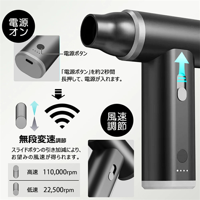 電動エアダスター エアダスター 空気除塵器 電動式除塵器 エアブロワー クリーニングデバイス 強力エアフロー エア圧力調整 電池式 USB充電式 長時間使用 手持ち式 軽量デザイン ポータブル パソコン清掃 キーボード清掃 電子機器清掃 自動車内部清掃 家電製品清掃 家庭清掃