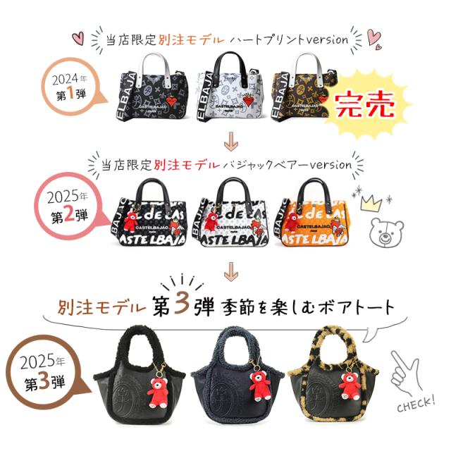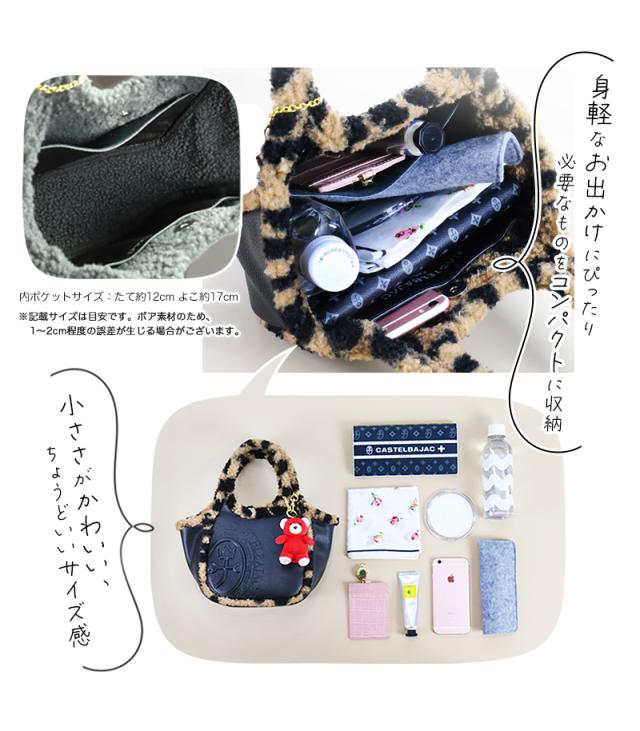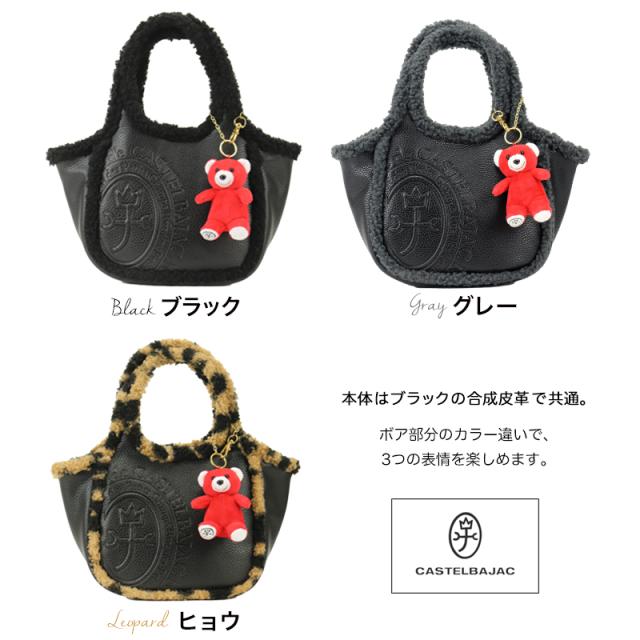 【1500円OFFクーポン配布中!】カステルバジャック バッグ トートバッグ レディース ミニバッグ ブランド CASTELBAJAC ミニトート 小さめ 黒 レオパード ヒョウ柄 ボア ボアトート ハンドバッグ おしゃれ かわいい 人気 バジャックベア 数量限定 3096