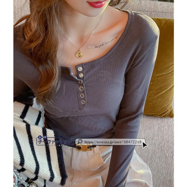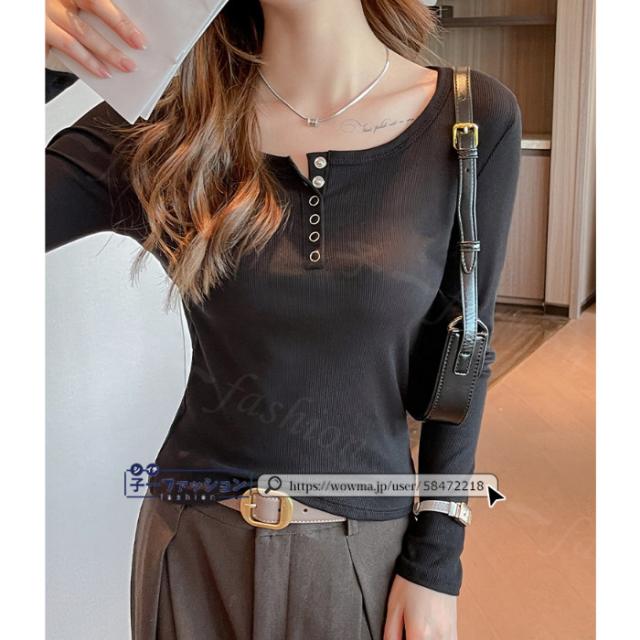 Tシャツ 長袖 長袖tシャツ 冬新作 カットソー オ一プンネック リブ ショルダーラインシーム スリム インナー ハーフボタン 薄手 細見え レディース トップス 無地 20代 30代 40代 女性 女子 女性用 秋服 春秋
