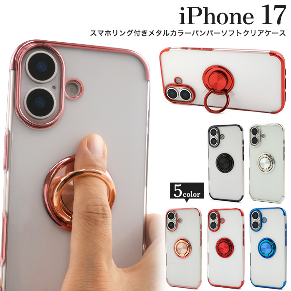 スマホケース iPhone17 スマホリング付き メタルカラー バンパー ソフトクリアケース アイフォン17 背面 保護 カバー ソフトケース 無地 柔らかい TPU シンプル アイホン スマホカバー アイフォン 新機種 iPhone 17 アイフォン17 おしゃれ