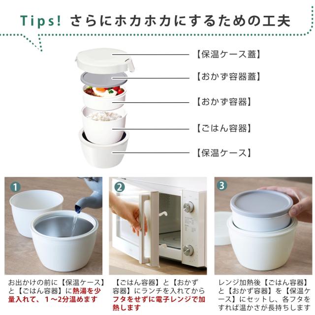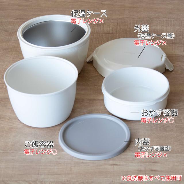 | 備考 | ご飯容量:お茶碗約1.5杯分 ご飯容器、おかず容器は蓋を外して電子レンジ使用可 保温ケース以外は食洗機使用可 |