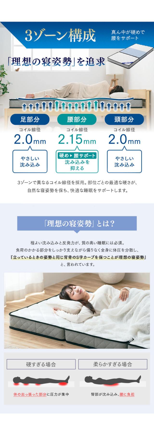 ◆「理想の寝姿勢」を追求した3ゾーン構成
