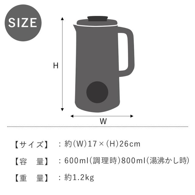 ■容量 (約)調理時 600ml/沸騰時 800ml