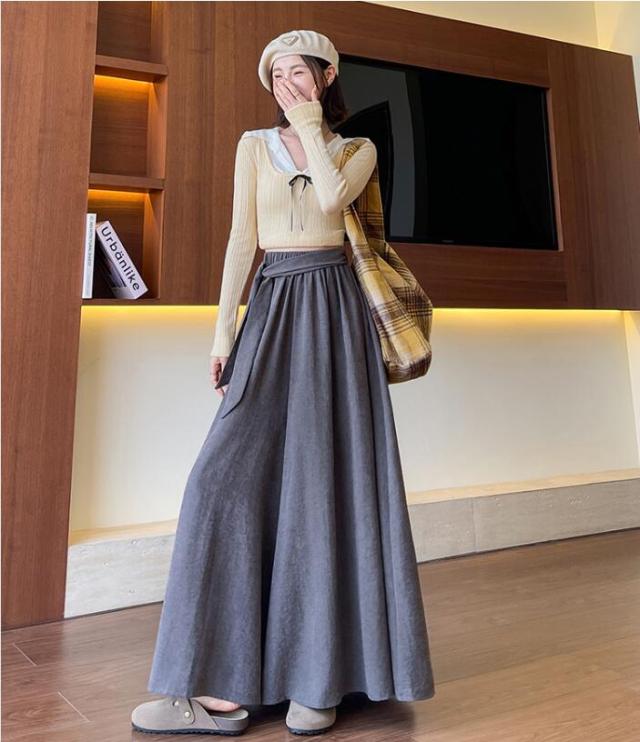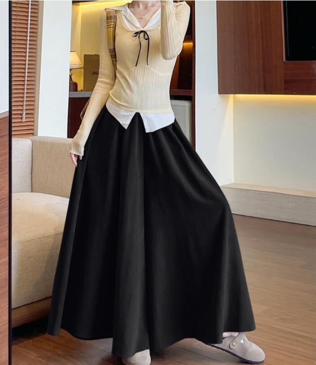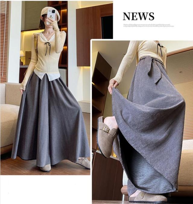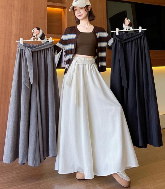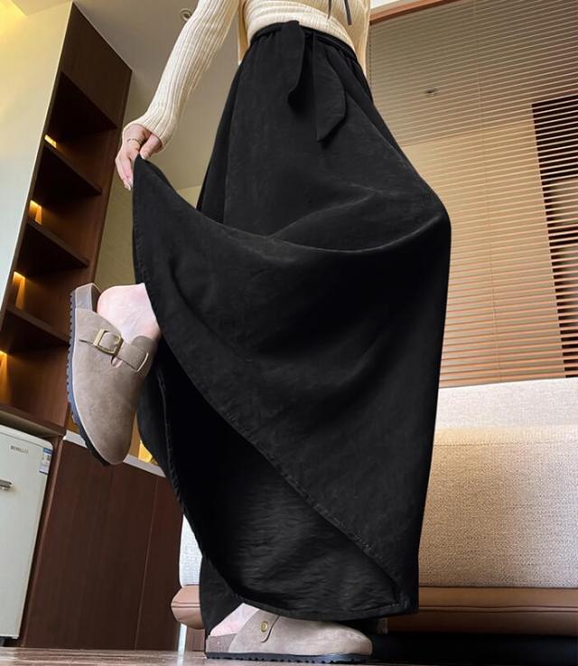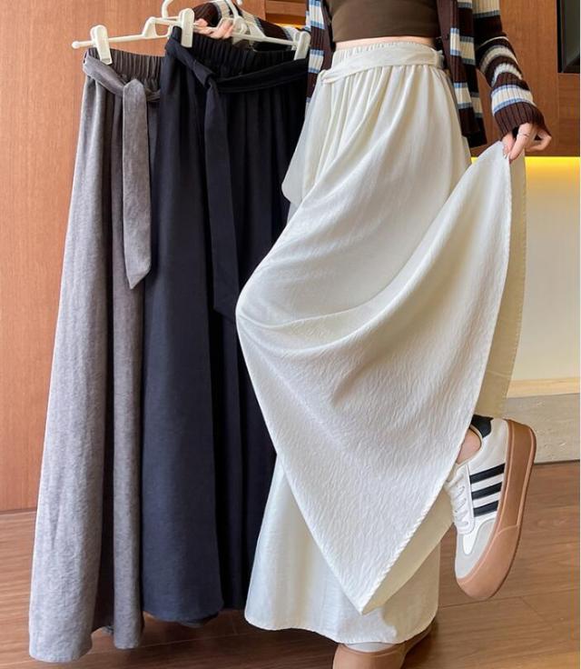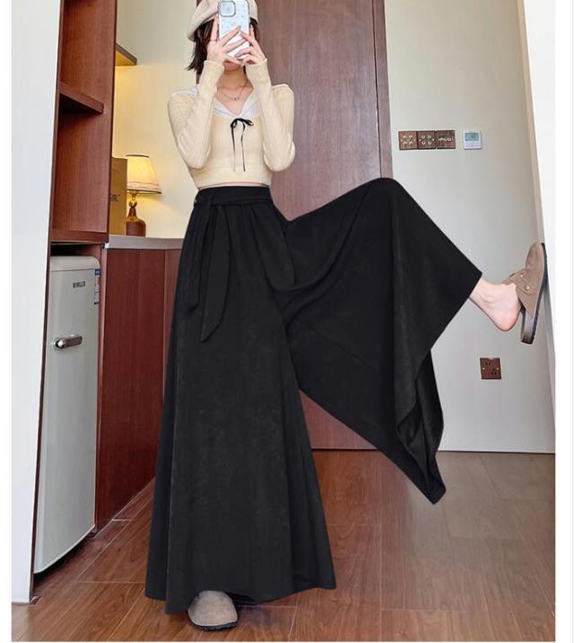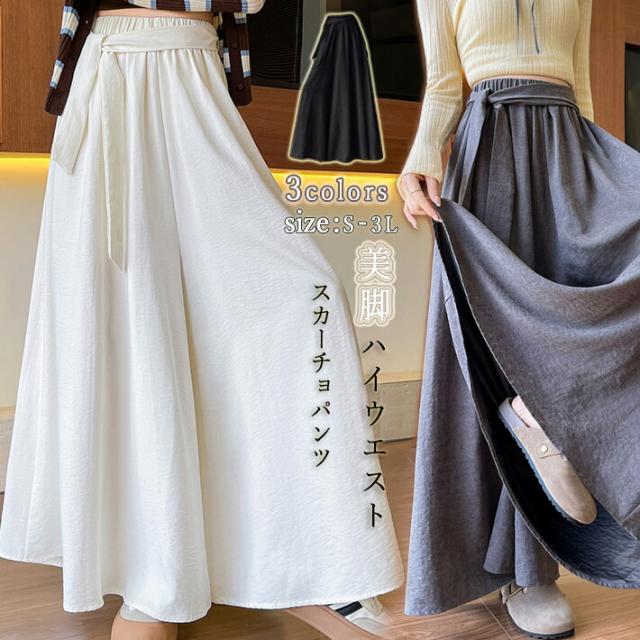 ガウチョ スカーチョ ワイドパンツ レディース スカートパンツ ガウチョパンツ パンツ ウエストリボン ウエストゴム スカンツ フレア 揺れる ハイウェスト 無地 春 秋 S M L 2L 3L