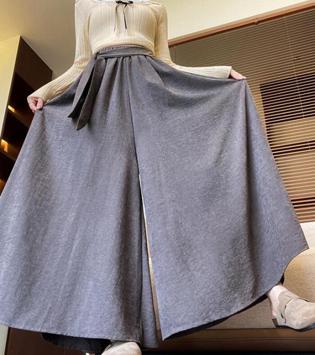 まるでロングスカートのようなたっぷりとしたフレア感がありながら、パンツなので動きやすく快適です。