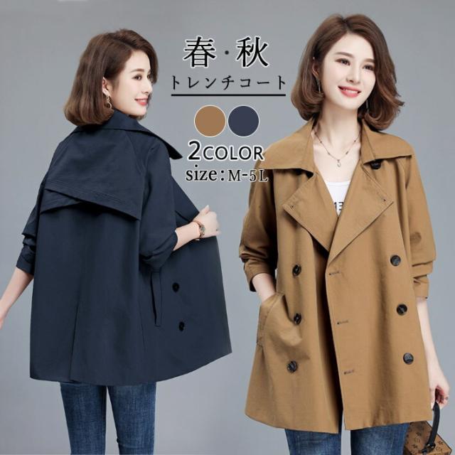 トレンチコート レディース コート スプリングコート ショートコート ミドル丈 アウター 上着 アウター 長袖 ジャケット 羽織り あったか 通勤 オフィス 大きサイズ 春 秋 冬 50代 40代 30代 20代