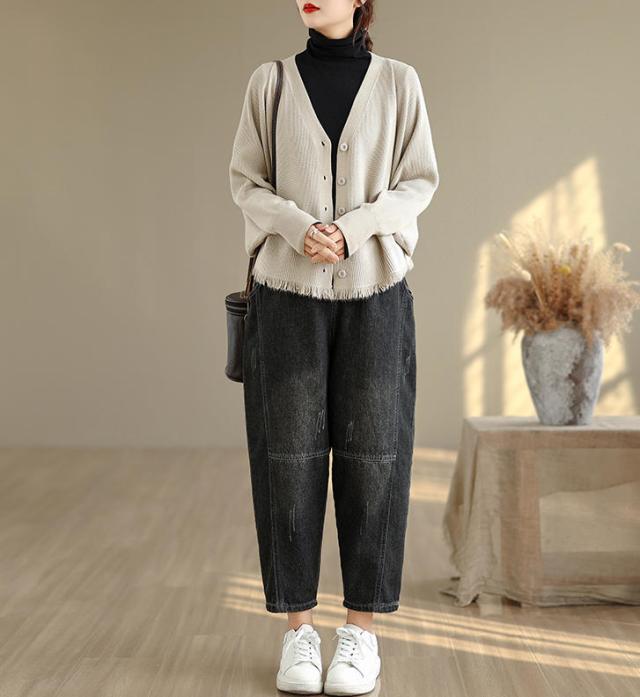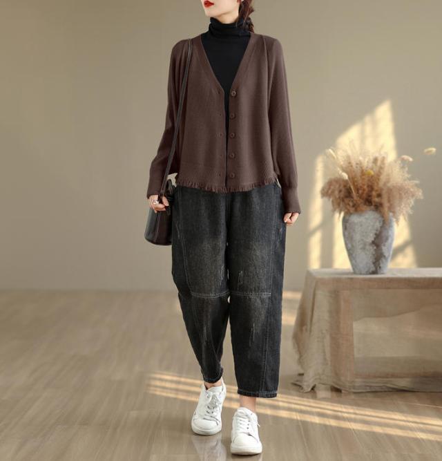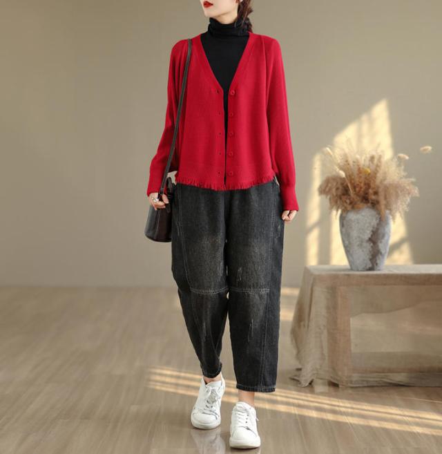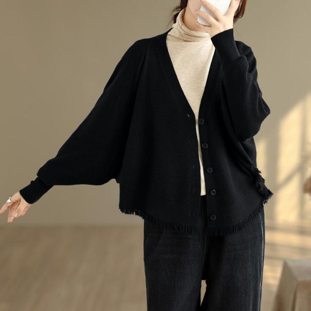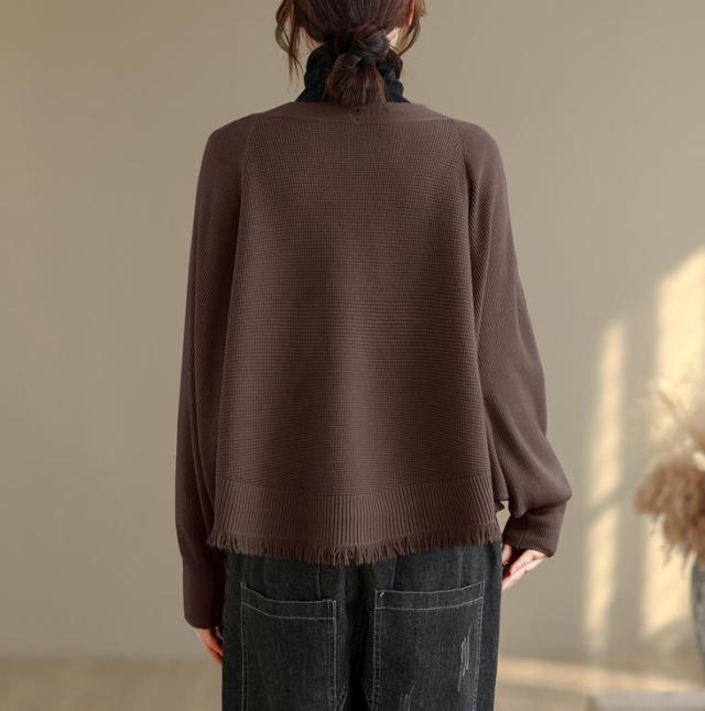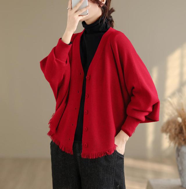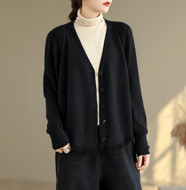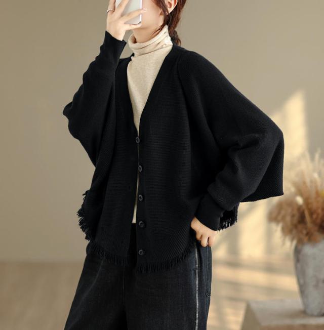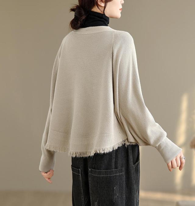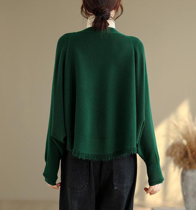 カーディガン ニット レディース ドルマンスリーブ 裾フリンジ 羽織 アウター ショート Vネック 袖口リブ 前ボタン 大きめ ゆったり リラックス 可愛い お洒落 春 夏 秋