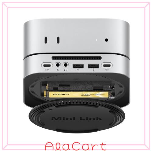 ORICO MiniLink Mac Mini M4 アルミ製ドッキングステーションは、M.2 NVMe SSD スロットを装備し、最大 8TB まで対応。40Gbps USB4 イン