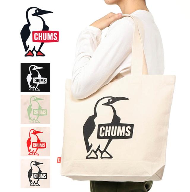 CHUMS チャムス ブービーキャンバストート CH60-3495 コットン キャンバス ピクニック A4サイズ 肩掛け 薄手 ロゴ プリント アウトドア 買い物バッグ ブラック レッド