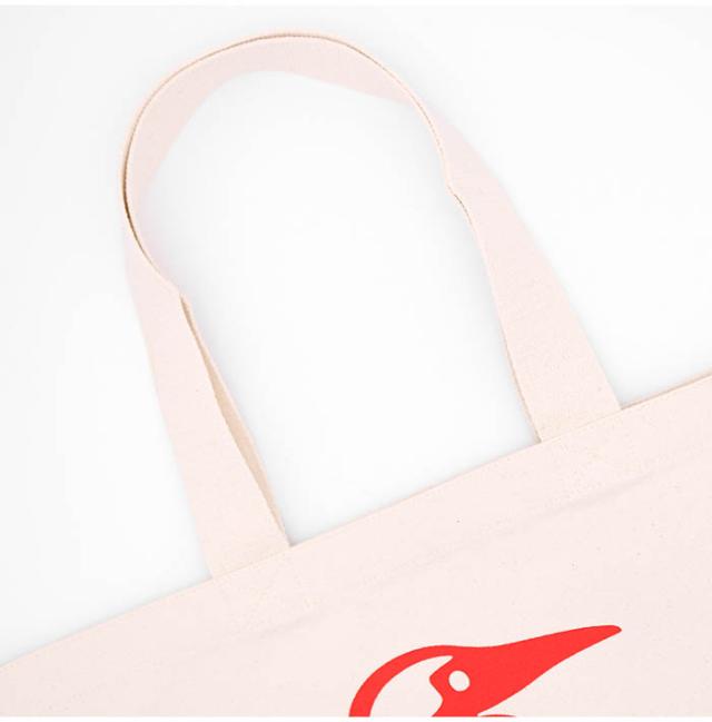・A4サイズ収納可能 ・ハンドルは肩にかけやすい長さで設計 ・薄手なので折りたたんで持ち運びも可能 ・前面にブービーバードロゴをプリント |