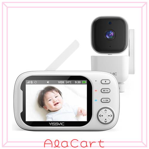 YISSVIC ベビーモニター 720P 3.5吋 回転ベビーカメラ 1.8m電源ケーブル付き 双方向音声通信 暗視機能付き見守りカメラ 温度検知 遠隔監