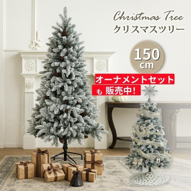 即納 クリスマスツリー 150cm 枝先雪化粧追加 雪化粧 軍手付き 豪華セット オーナメントセット 北欧 ツリーセット クリスマス Christmas tree Xmas ギフト LED付き パーティー インテリア 送料無料 2025年 ホワイトデー 卒業式