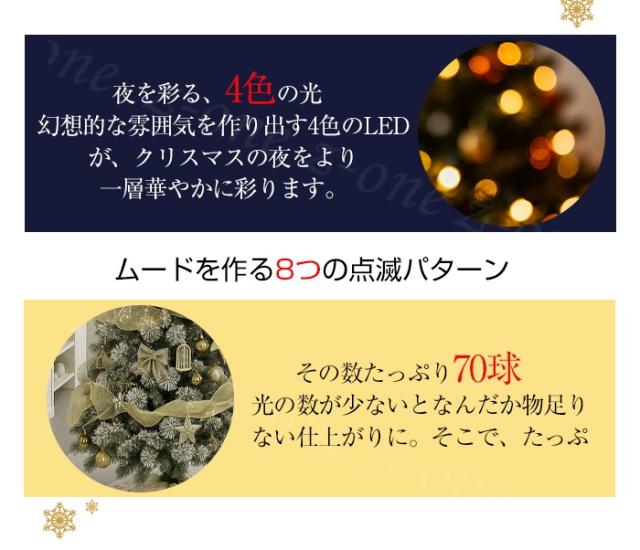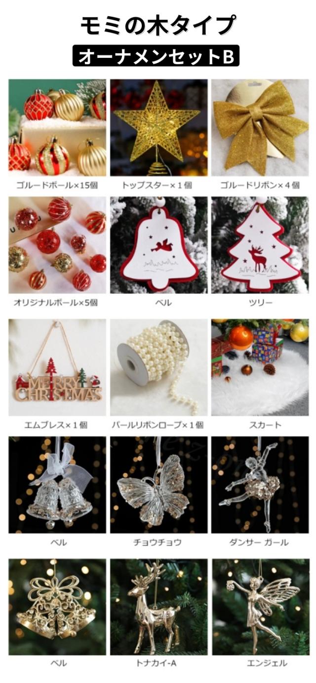 豊富なオーナメント、ふんわりとあたたかく光るLED電飾が付属しているので、届いたその日からすぐに飾り付けができます。