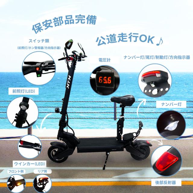 電動キックボード キックスクーター 折りたたみ 最高速度約60km/h 15度坂登 3段階速度調整 後部反射器 防水 公道走行可能 通勤 通学 買い物 K24