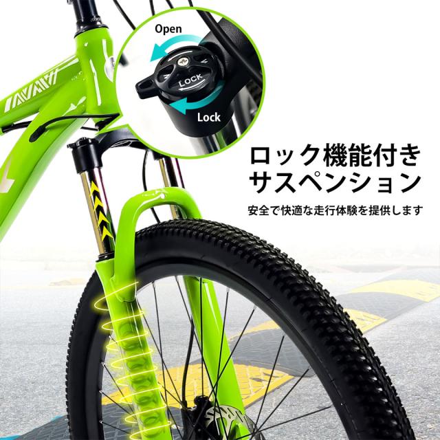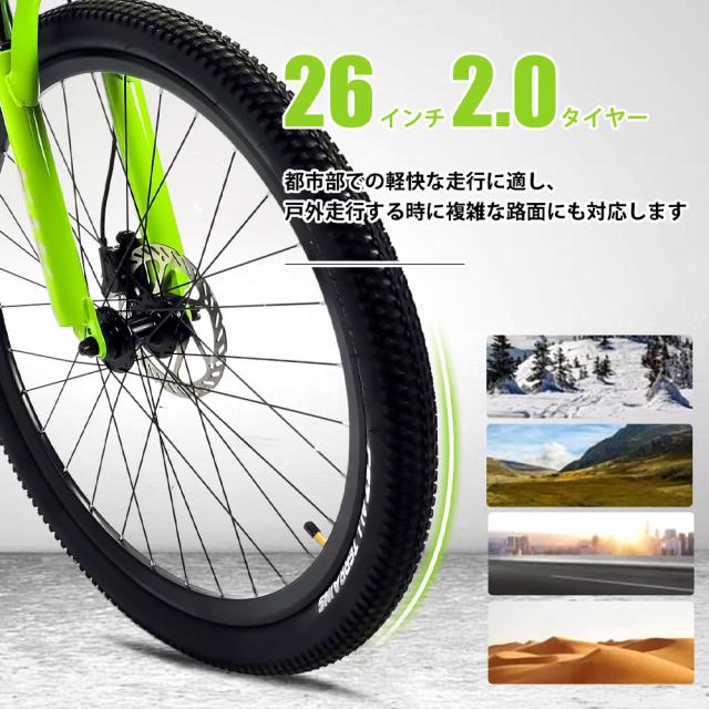 マウンテンバイク 自転車 26インチ 21段変速 シマノディスクブレーキ リアサスペンション ロック機能付き 2.0タイャ一 アルミ合金ベダル 複雜な路面 街乗り 都市 旅行 アウトドア 山 マウンテン KIK