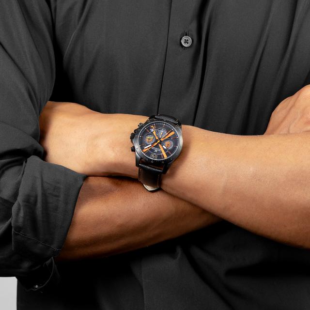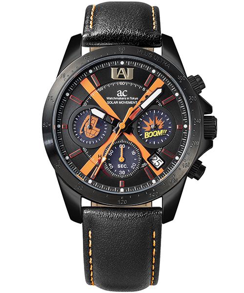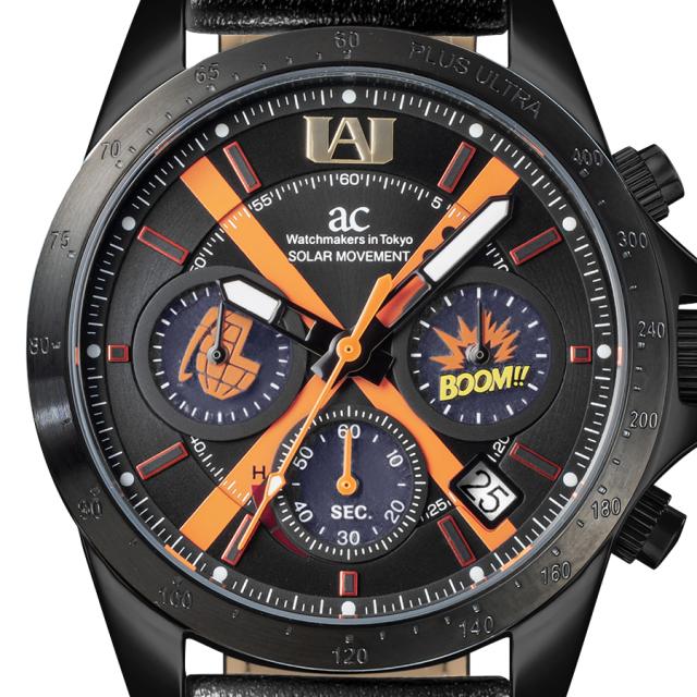 こちらのモデルは、爆破の“個性”を持つ爆豪勝己をモチーフにデザイン。3時位置と9時位置のサブダイヤルには、手榴弾と爆破エフェクトに「BOOM!!」の文字を大胆に配置しました。