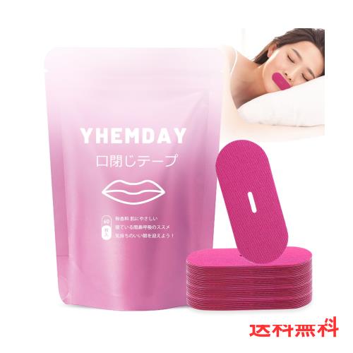 YHEMDAY 口閉じテープ いびき防止グッズ 鼻呼吸促進 鼾防止 口呼吸防止 肌にやさしいタイプ 無香料 いびき防止テープ 60 枚入り マゼンタ