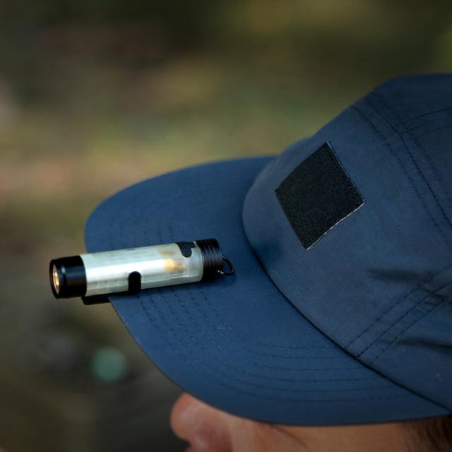 付属のクリップを帽子のつばに引っ掛けると