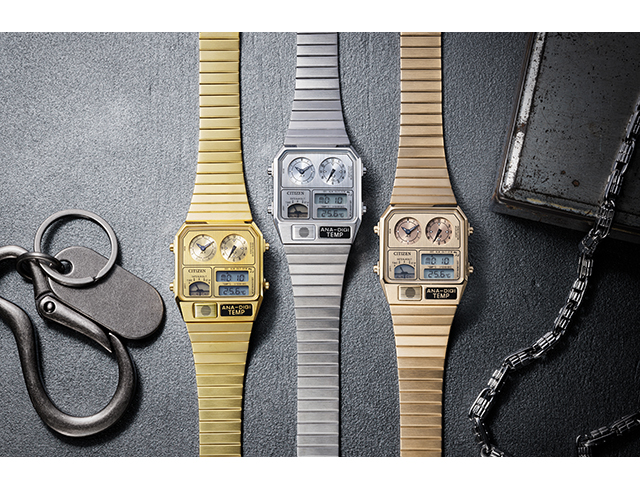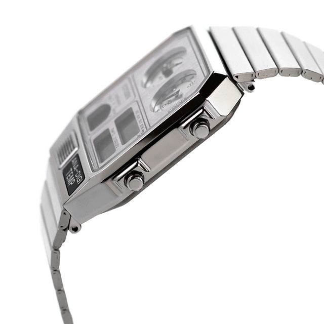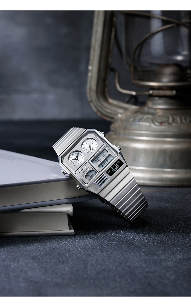 正規品 7年保証キャンペーン 送料無料 シチズン コレクション レコードレーベル 流通限定モデル 数量限定 クロノグラフ メンズ レディース 腕時計 JG2101-51H CITIZEN RECORD LABEL Metallic ANA-DIGI TEMP アナデジ シルバー ◆1980年代に登場した、レトロフューチャーなデザインが現在でも大人気。絶妙なサイズ感で、男女問わずユニセックスに楽しめるアナデジテンプの限定モデルです。ケース、バンド、文字板すべてにステンレスを使い、全体をワンカラーでまとめた高級感あふれるフルメタル仕様です。文字板の上板に施した粗いヘアラインが、メタルの質感をきわだたせています。スタイリッシュなシルバー、華やかなイエローゴールド、より限定感のあるウォームゴールドの3色展開です。 発売日:2025年10月発売