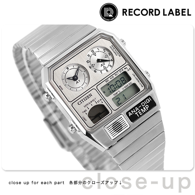 シチズン コレクション レコードレーベル Metallic ANA-DIGI TEMP クォーツ 電池式 腕時計 ブランド メンズ レディース 流通限定モデル 数量限定 クロノグラフ CITIZEN RECORD LABEL JG2101-51H アナデジ シルバー おしゃれ 防水 プレゼント 実用的