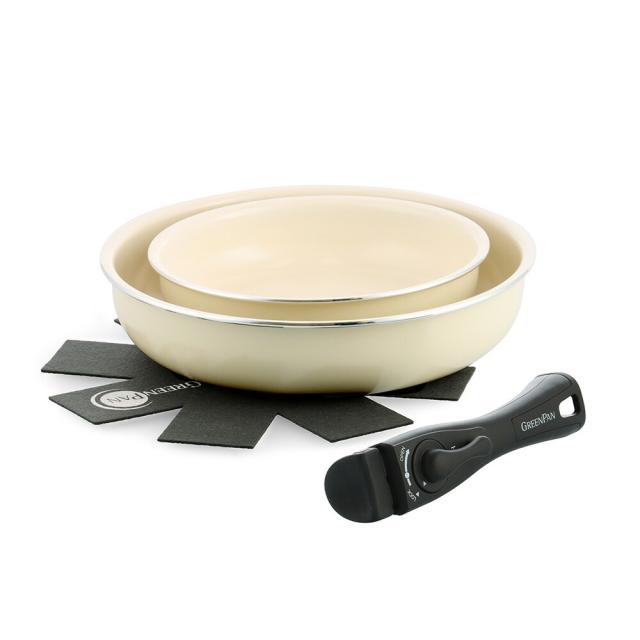 グリーンパン クリックシェフ4点セット GREEN PAN | セラミックコーティング IH対応 ガス火対応 フライパン20cm フライパン26cm プロテクトシート 鍋敷付き リムーバブルハンドル 取っ手が外せる コンパクト収納 洗いやすい PFASフリー【ラッピング不可】