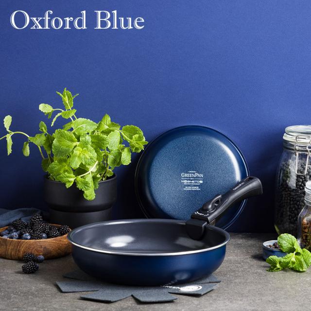 オックスフォードブルー 深みのあるブルーでシックなオックスフォードブルーはどんなキッチンインテリアとも相性のいいカラーリングです。 | グリーンパンを選ぶ理由