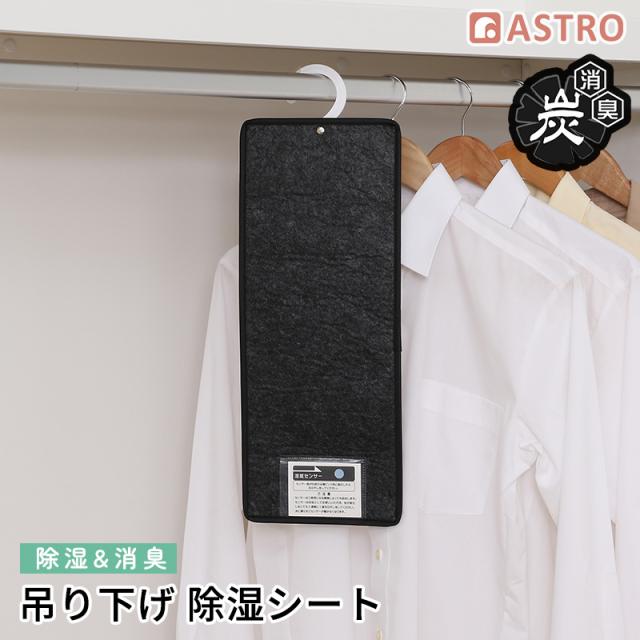除湿シート 1枚 活性炭の力で消臭 クローゼット ハンガー 吊り下げ 繰り返し使える 湿度センサー付き 衣類 洋服 炭入り 強力吸湿 防ダニ 防カビ 湿気取り フック付き グレーブラック アストロ 615-50