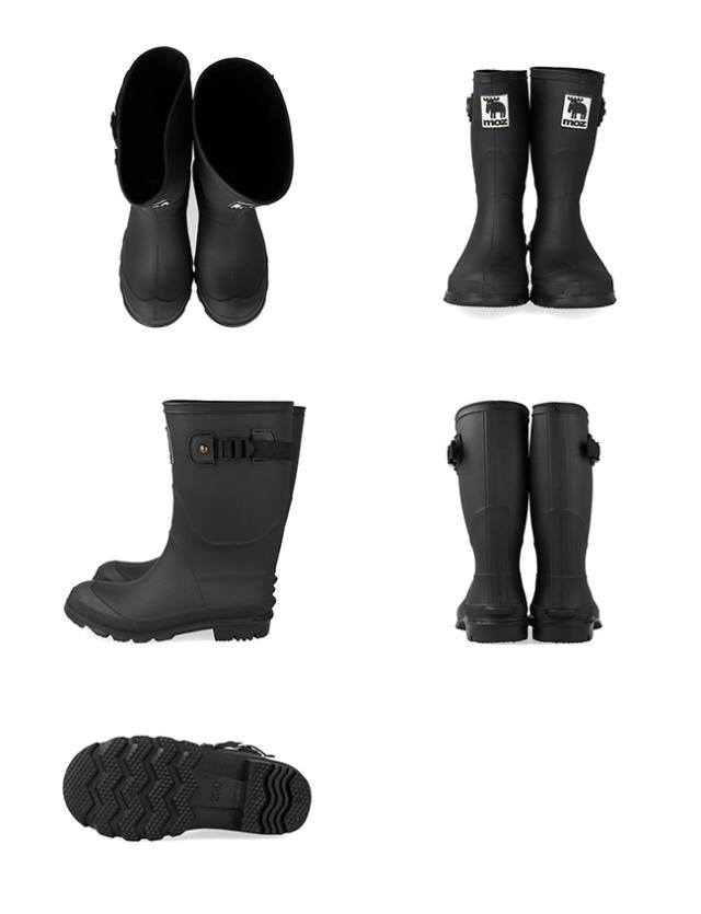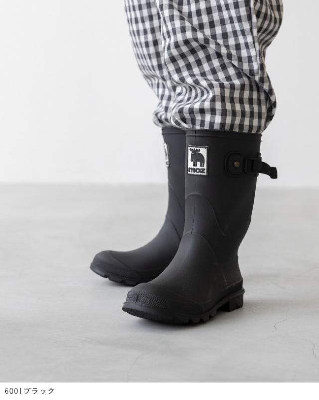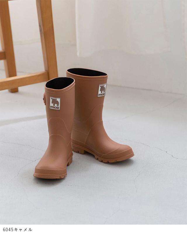 シンプルなデザインに、ヘラジカ「エルク」のロゴがワンポイントで可愛いブランドmozのレインブーツ。
