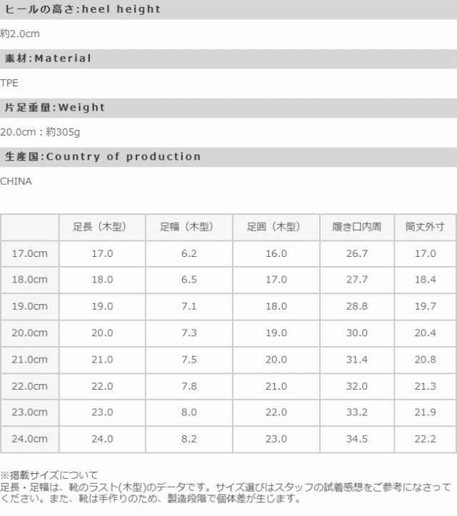 足長(木型):20.0cm/足幅(木型):7.3cm/筒周内周:30.0cm/筒丈外寸:20.4cm