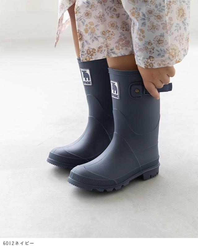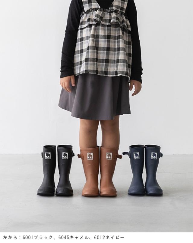 シンプルなデザインに、ヘラジカ「エルク」のロゴがワンポイントで可愛いブランドmozのキッズレインブーツ。