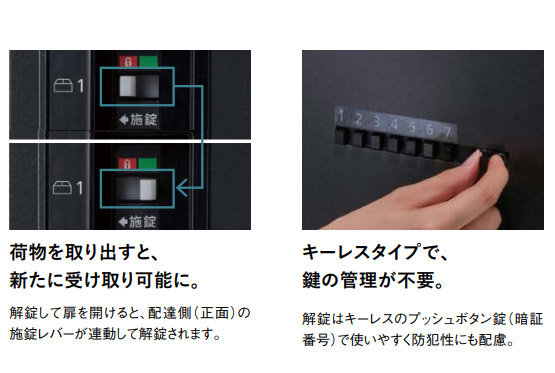 厚さ7cmの大型郵便物も受け取れるポストが一体となった宅配ボックス。