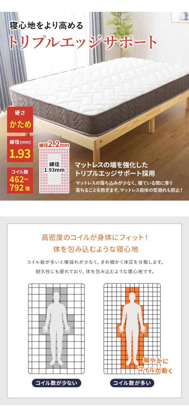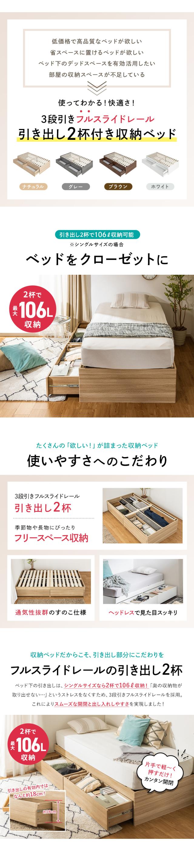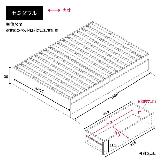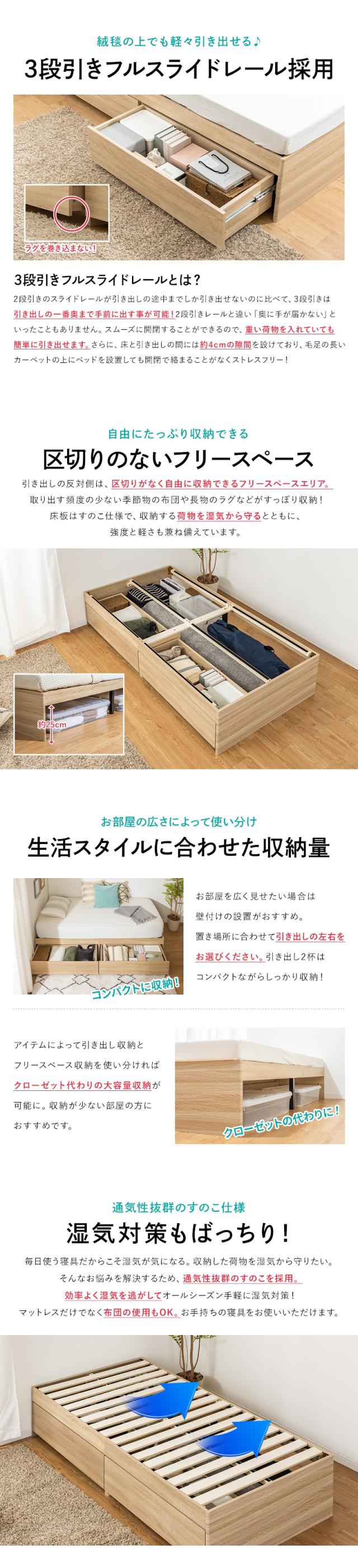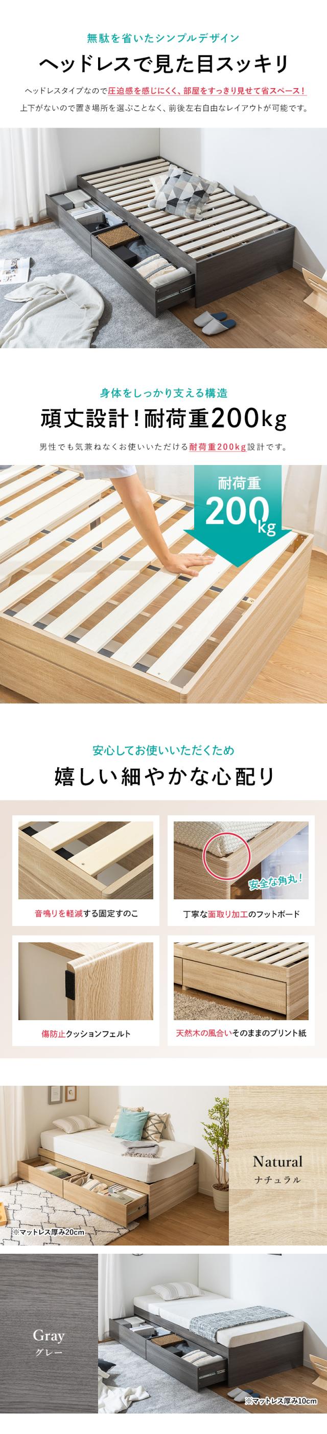 大容量 ヘッドレスベッド 収納ベッド マットレス付き ポケットコイル セミダブル チェストベッド 収納付き 引き出し付き すのこベッド 容量約84L