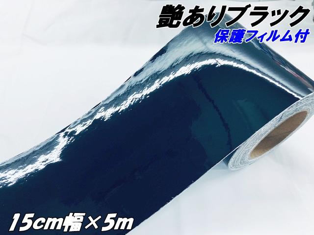 カーラッピングシート 15cm幅×5m 艶ありブラック(保護フィルム付) カーラッピングフィルム グロスブラック ウインドウモール、トリムモール等
