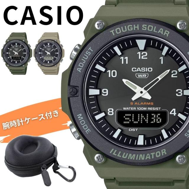 希少モデル 海外限定 カシオ チープカシオ ソーラー 腕時計 収納ケース付き 防水 アナログ デジタル メンズ レディース カーキ ベージュ チプカシ シンプル かっこいい 軽量 中学生 ビジネス プレゼント ギフト CASIO 時計