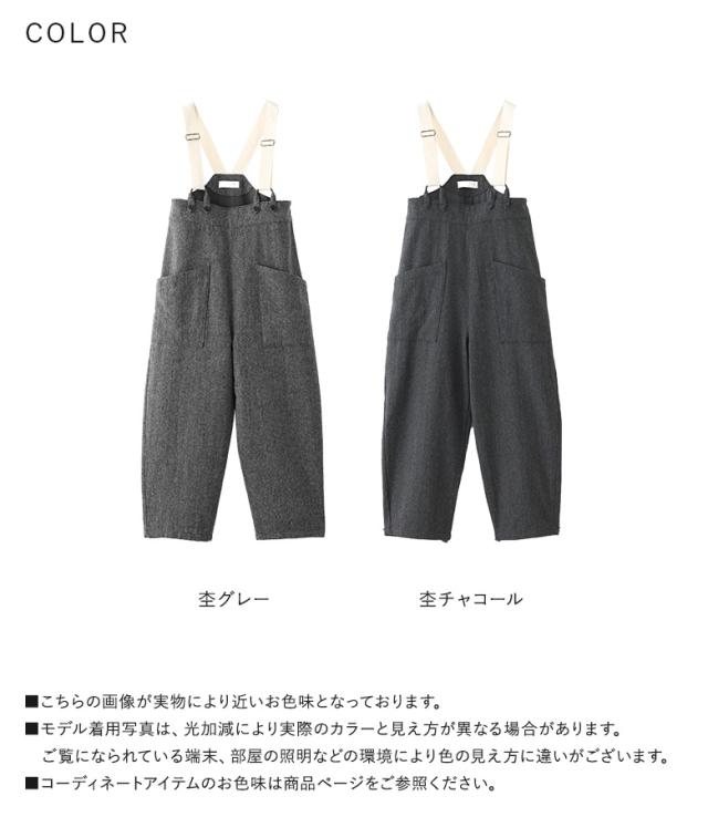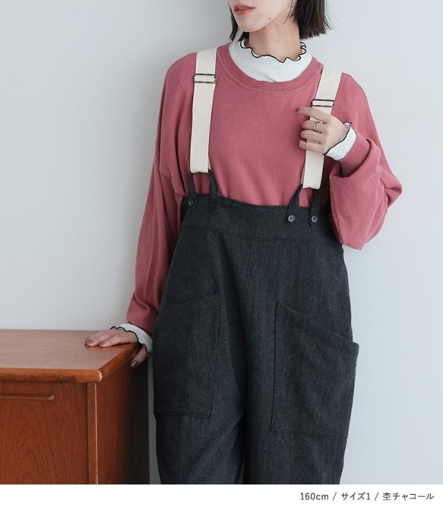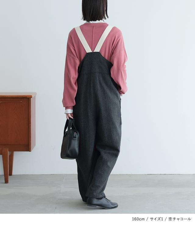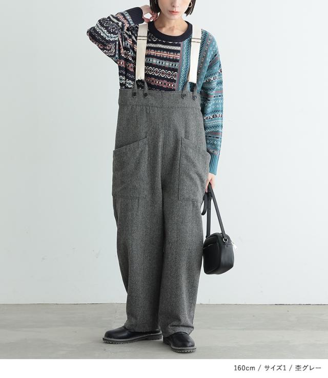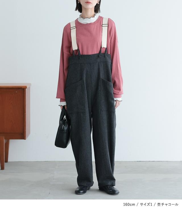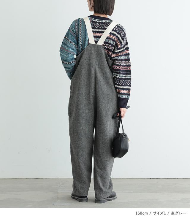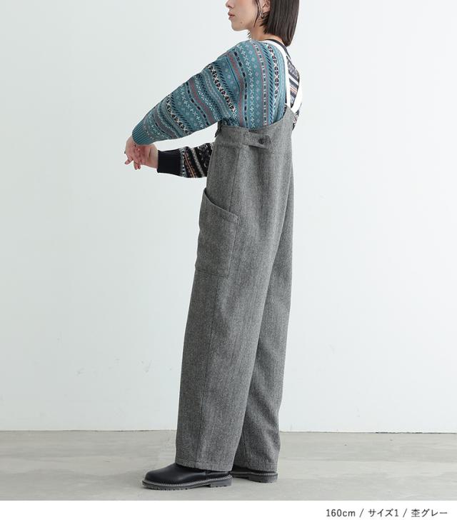 <冬新作>『ツイードコクーンサロペット』【メール便不可】【20】[サロペット ロング レディース ボトムス オールインワン オーバーオール ツイード コクーンシルエット 裏地付き 杉綾テープ 調整可能 体型カバー 秋 冬]