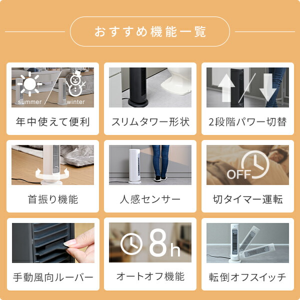 YAMAZEN ヤマゼン 山善 通販 冷暖タイプ ホットアンドクール エアー スリムファン タワーファン セラミックヒーター 足下暖房 冷暖 送風 温風 スリムヒーター コンパクトヒーター タワーヒーター 省スペース トイレ 脱衣所 キッチン 個室 書斎 羽根なし おしゃれ シンプル ホワイト/T1U30 ブラック/T1U33 |